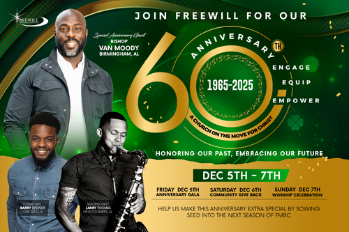 As we celebrate 60 years of God’s faithfulness, we also look forward with great expectation to the future of Freewill. To continue the work of ministry, expand our reach, and transform lives, we are asking every member, friend, and supporter to join us in sowing a special 60th Anniversary Seed, above your regular tithes and offerings.