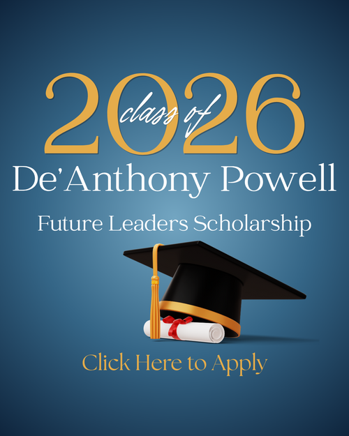 The De’ Anthony Powell Future Leaders Scholarship was established to invest in the next generation of leaders who demonstrate character, resilience, and a commitment to making a meaningful impact in their communities. This scholarship moves beyond traditional academic measurements to recognize individuals who lead through real-life experiences, personal growth, and purpose-driven actions.